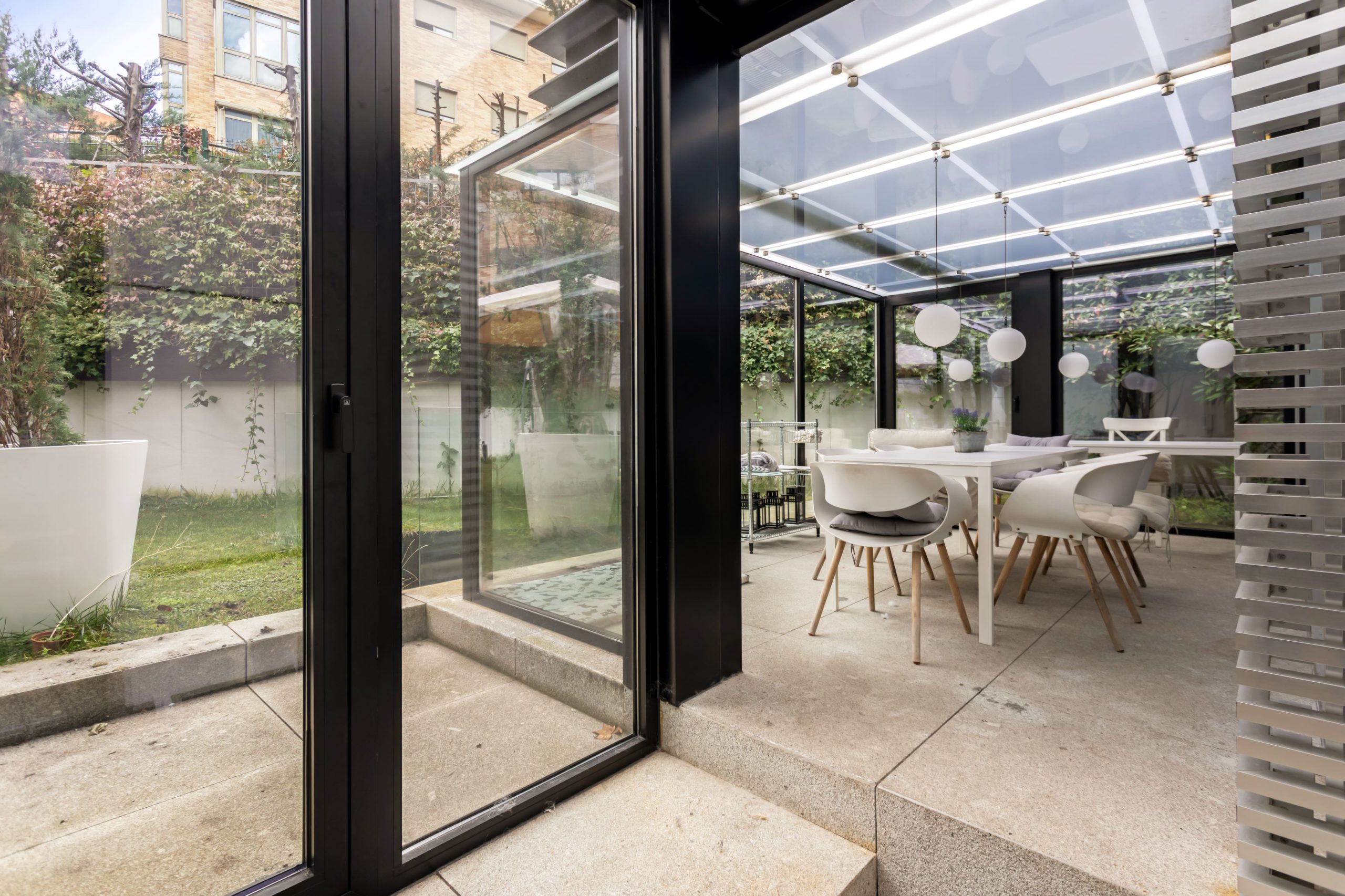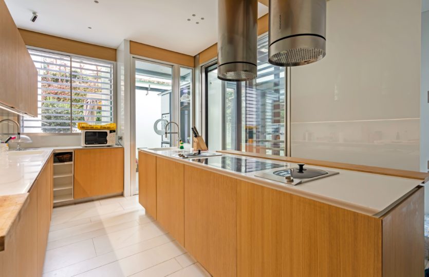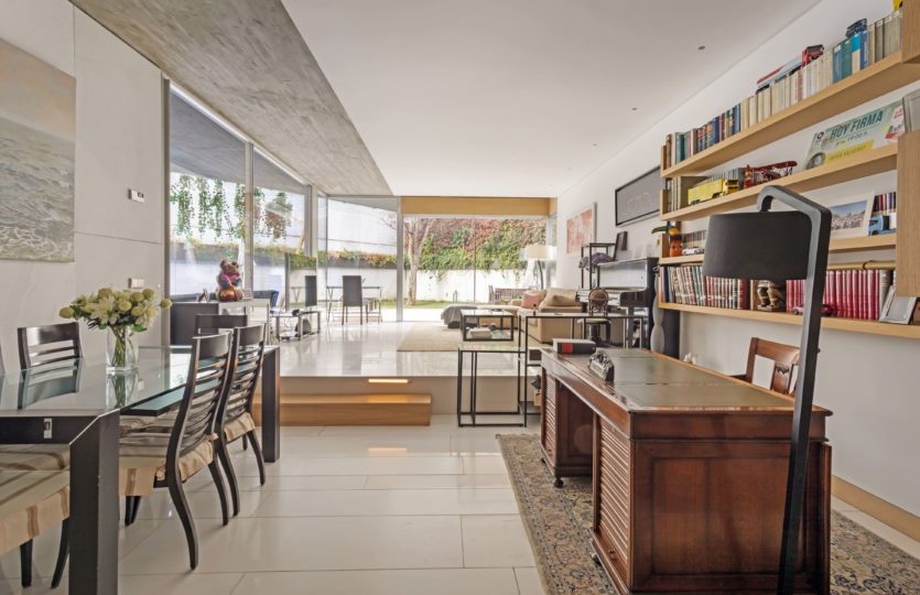 Destaca el porche acristalado, concebido como un comedor adicional que conecta elegantemente con el jardín, así como el jardín privado con piscina propia y la amplia terraza, perfectos para el ocio y el disfrute al aire libre. La vivienda cuenta con dos cocinas completamente equipadas y dos zonas de salón repartidas entre la planta baja y el semisótano, lo que permite crear ambientes diferenciados y garantiza un alto nivel de privacidad.