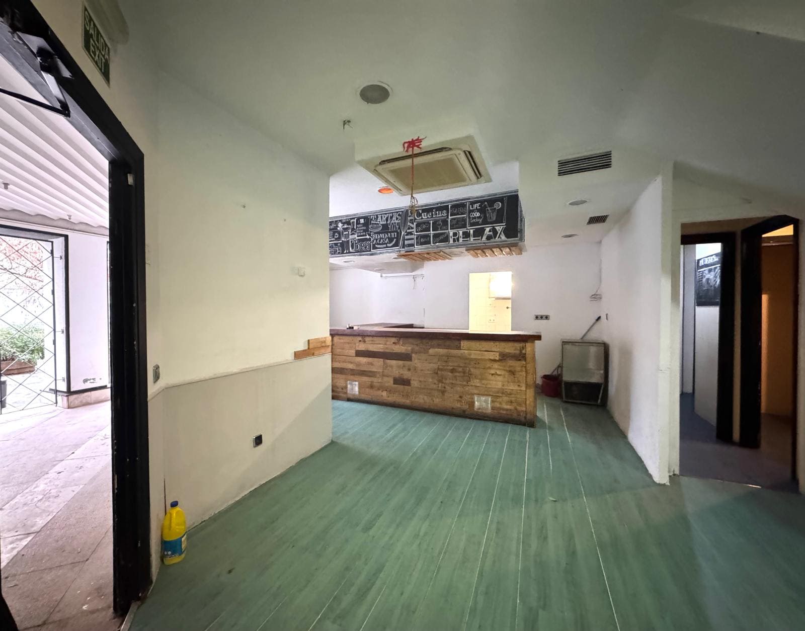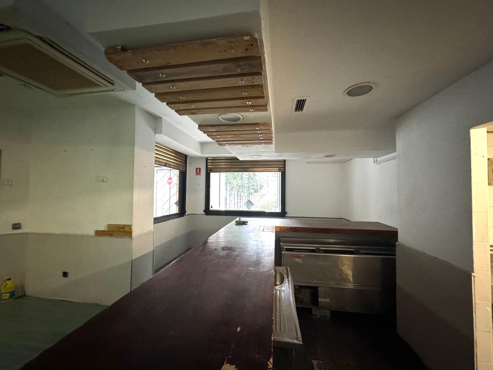 Tiene salida de humos, y 2 zonas de almacenaje a parte de los 80m2.