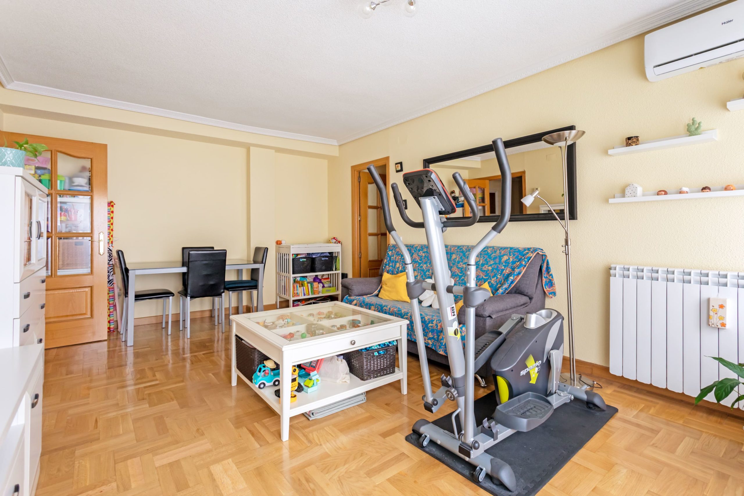 Les presentamos en exclusiva este piso situado en Hortaleza, una excelente opción para quienes buscan amplitud, comodidad y calidad de vida en una zona residencial consolidada de Madrid. La vivienda dispone de tres habitaciones bien proporcionadas, ideales tanto para una familia como para quienes necesitan espacio extra para despacho o invitados, y dos baños completos que aportan funcionalidad y confort en el día a día. El salón es amplio y muy luminoso, un espacio perfecto para el descanso o para disfrutar de reuniones, gracias a su distribución cómoda y a la entrada de luz natural. La cocina es independiente, práctica y bien dimensionada, lo que permite cocinar con comodidad y mantener separados los ambientes, cuenta con espacio de terraza tendedero el cúal aporta comodidad. Adicionalmente, el piso cuenta con 3 splits de aire acondicionado recientemente instalados, distribuidos en el salón y en dos de las habitaciones y con una plaza de garaje, un valor añadido que aporta seguridad y comodidad. Todo ello se encuentra en un entorno tranquilo y familiar como es Hortaleza, un barrio que destaca por su buena comunicación mediante transporte público y acceso rápido a las principales vías, así como por la cercanía a zonas verdes, comercios, colegios, centros de salud y todo tipo de servicios. La vivienda situada muy cerca del metro Hortaleza, combina el ambiente residencial y relajado con la cercanía a zonas de ocio y restauración, ofreciendo un equilibrio perfecto entre tranquilidad y vida urbana.
