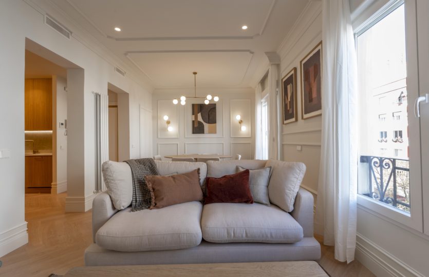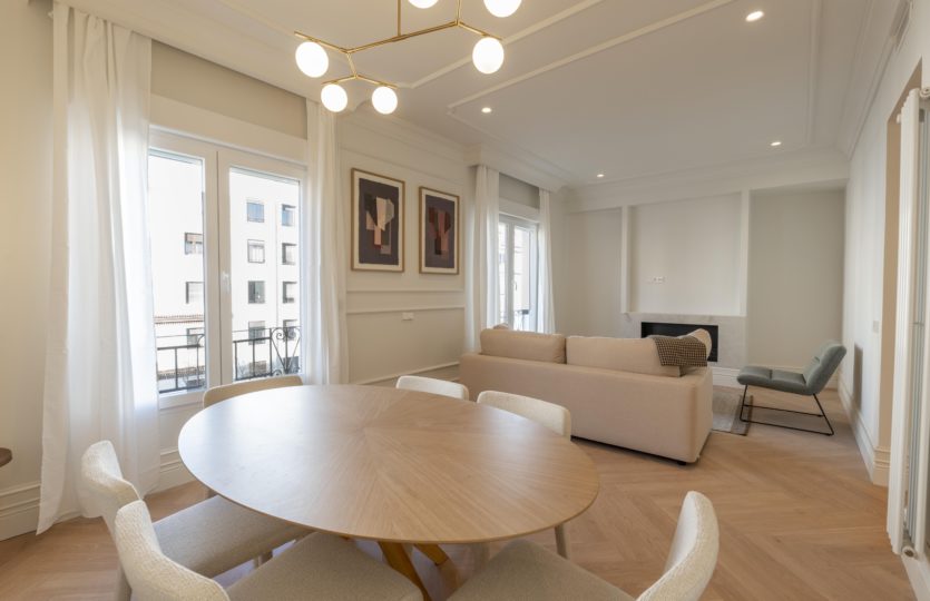 Wall Estate os presenta este magnífico piso de 105 M2 situado en una de las calles más demandadas del barrio de Goya, C/ Narváez. La vivienda ha sido recientemente reformada con un gusto exquisito, cuidando cada detalle y empleando materiales de alta calidad para ofrecer un hogar contemporáneo, elegante y funcional.